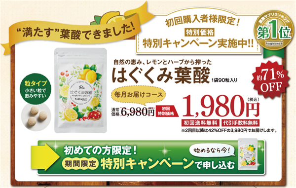 詳しいお申込みははぐくみ葉酸サプリサイトにてお願いします。